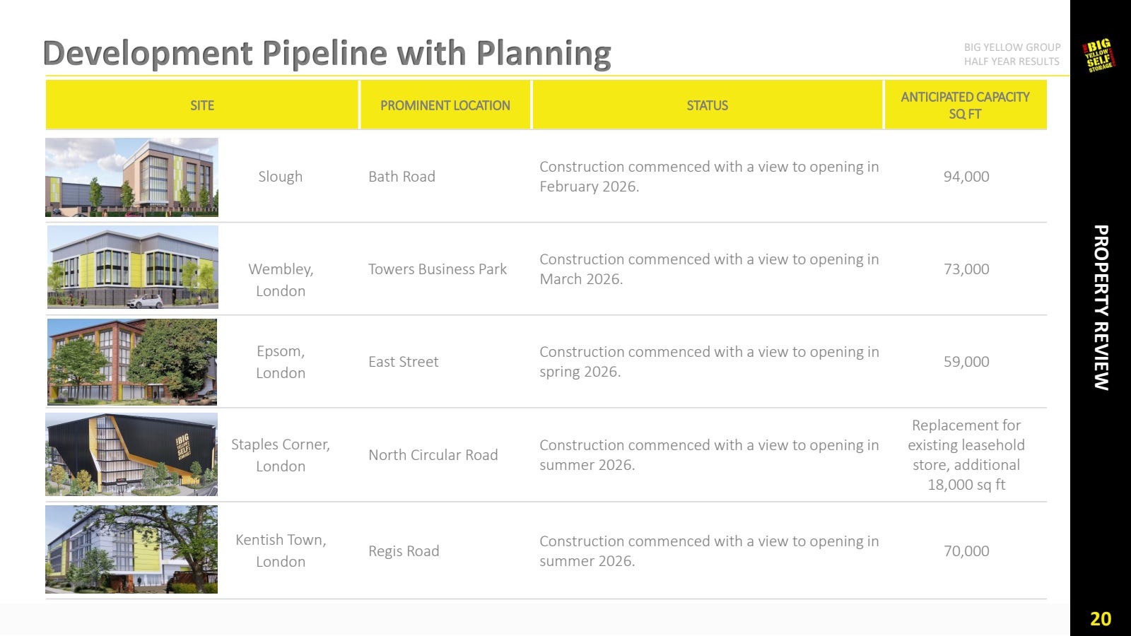 Deux nouveaux centres ont ouvert récemment à Staines et Queensbury, tous deux situés dans la région londonienne. Sept autres sont en construction, et le management prévoit de démarrer les chantiers de Leamington Spa et Newcastle au premier semestre 2026.