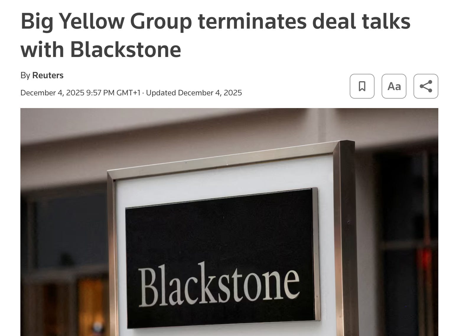 L’actualité la plus marquante des derniers mois reste sans conteste l’intérêt manifesté par Blackstone Europe pour une acquisition de Big Yellow.