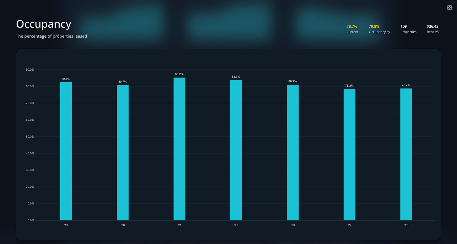 Car c’est là le point d’attention : l’occupation recule de 0,8% sur un an, passant à environ 75% de la surface louable maximale.