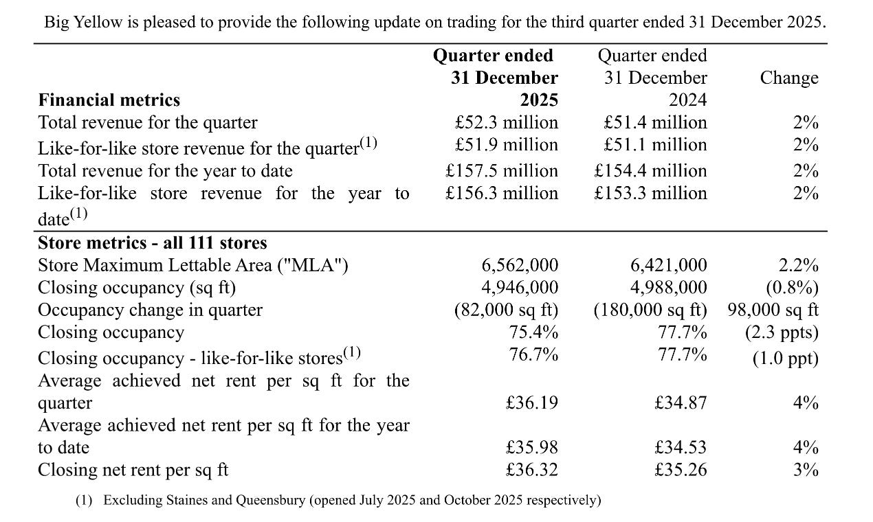 Les résultats viennent de tomber ce matin. Big Yellow Group, le leader incontesté du self-storage au Royaume-Uni, a publié son point d’activité du troisième trimestre.