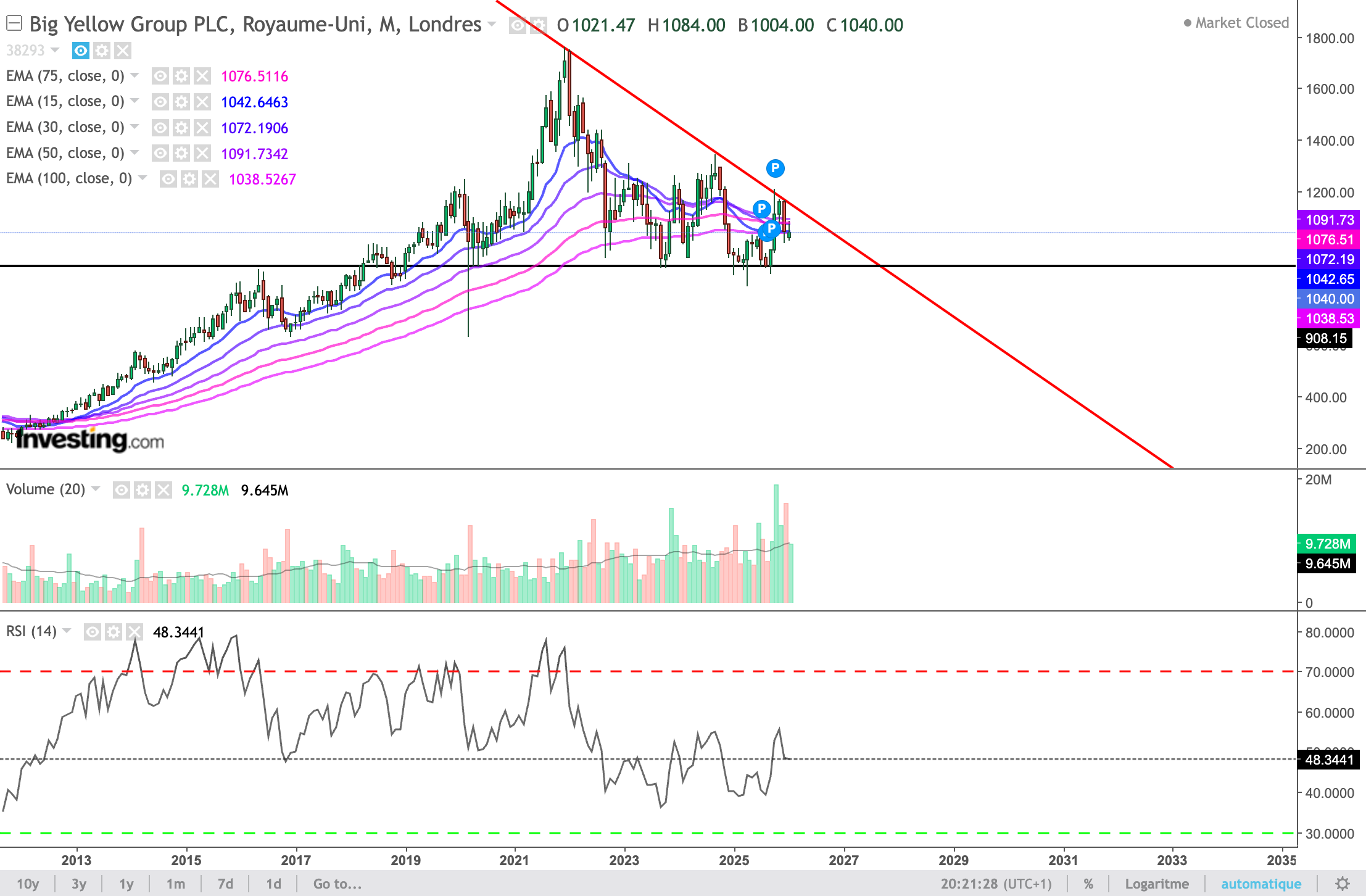 Pour les investisseurs plus offensifs qui souhaitent néanmoins se positionner, un support majeur se dessine aux alentours des 900 pence niveau qui pourrait constituer une zone d’accumulation pour ceux prêts à anticiper un retournement.