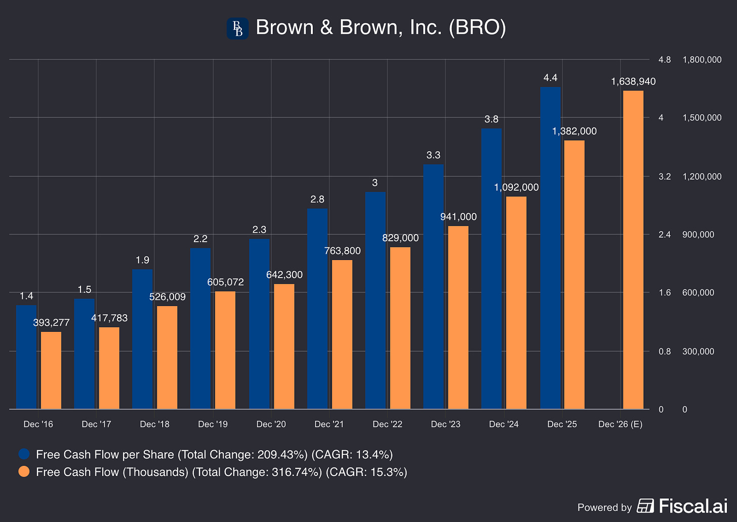 L’historique du Free Cash Flow de Brown & Brown est impressionnant :