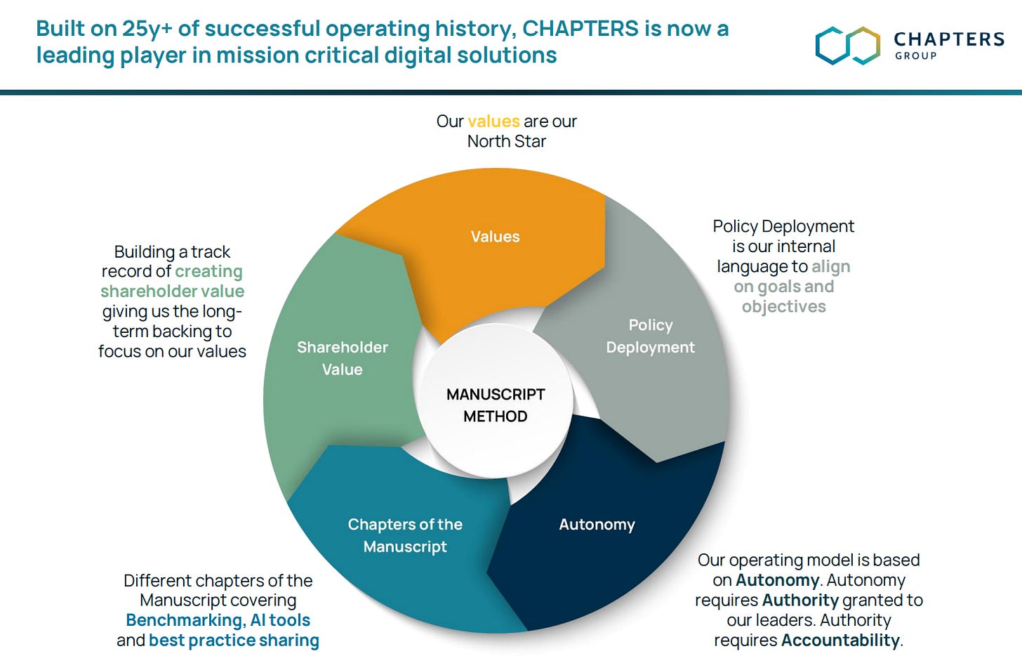 CHAPTERS se positionne comme un acquéreur de long terme (“We think in decades”) de sociétés de logiciels verticaux.