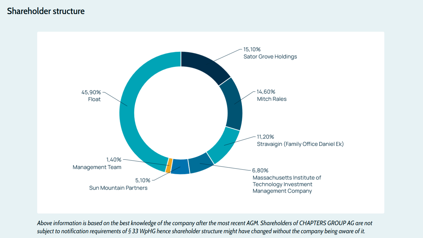 Jan-Hendrik Mohr détient ses actions CHAPTERS via sa société holding Stanza Management Beteiligungen GmbH. En décembre 2025, Stanza a vendu ~4,06M€ d’actions tandis que Mohr en rachetait ~4,26M€ en nom propre le même jour. C’est très probablement un transfert patrimonial, pas un achat net sur le marché. Le signal est neutre, pas bullish.