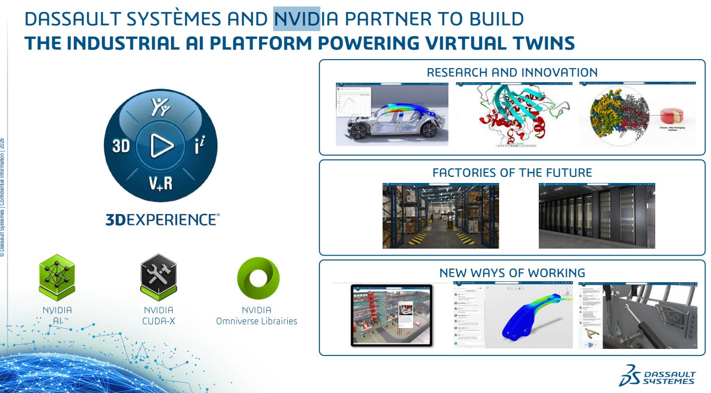 Lisons les détails car ils sont importants. Il ne s’agit pas d’un simple accord de logo. NVIDIA adopte le MBSE (Model-Based Systems Engineering) de Dassault Systèmes pour concevoir ses propres AI factories, en commençant par la plateforme NVIDIA Rubin c’est-à-dire que le concepteur des puces qui alimentent toute la révolution IA utilise CATIA et 3DEXPERIENCE pour concevoir ses propres infrastructures.