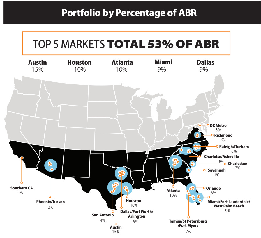 Le reste est réparti sur d’autres marchés Sun Belt.