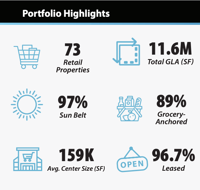 Type de REIT : Retail - Centres commerciaux de proximité -Neighborhood Centers (Centres de voisinage) ancrés par des enseignes alimentaires