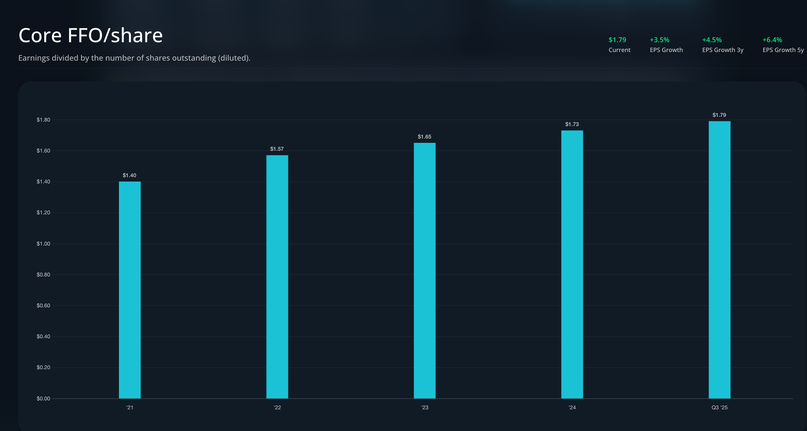 P/FFO actuel : 15,9x (sur guidance médiane de 1,815 $)
