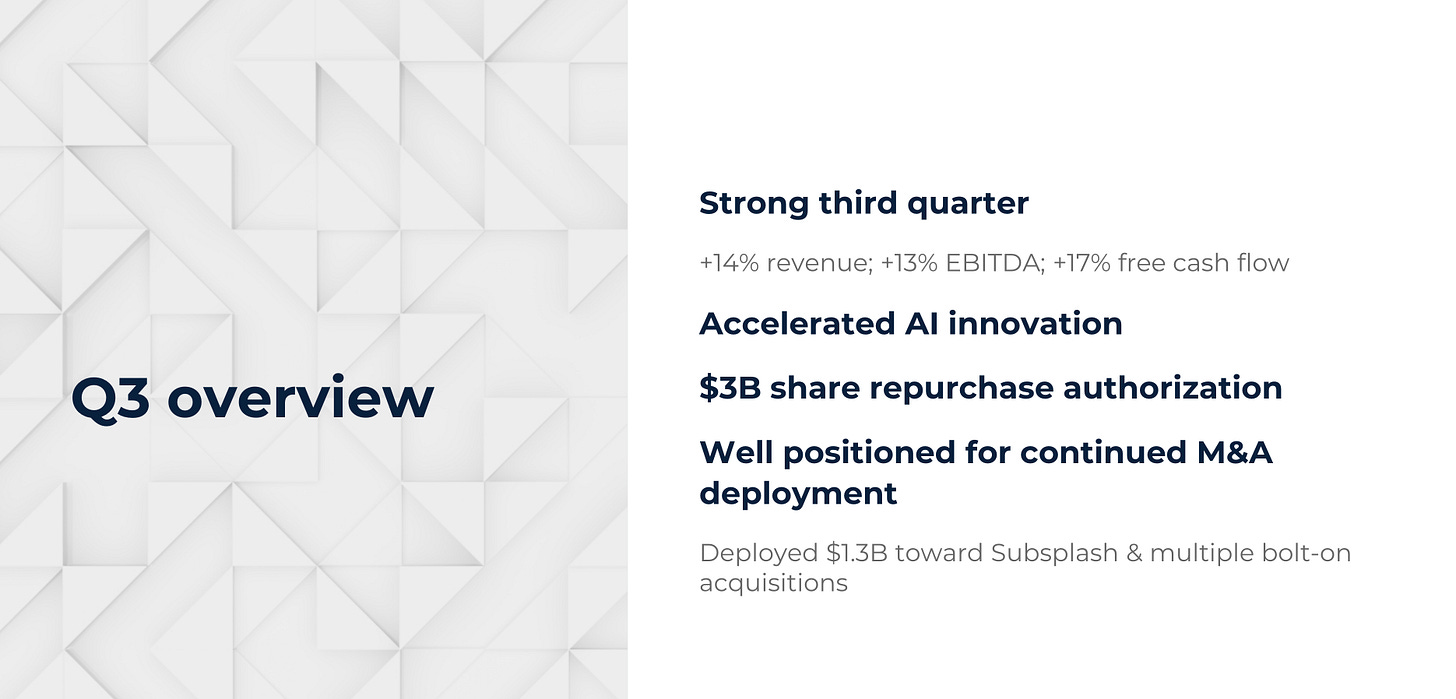 Acquisitions: $1.3 billion spent on Subsplash and bolt-ons.