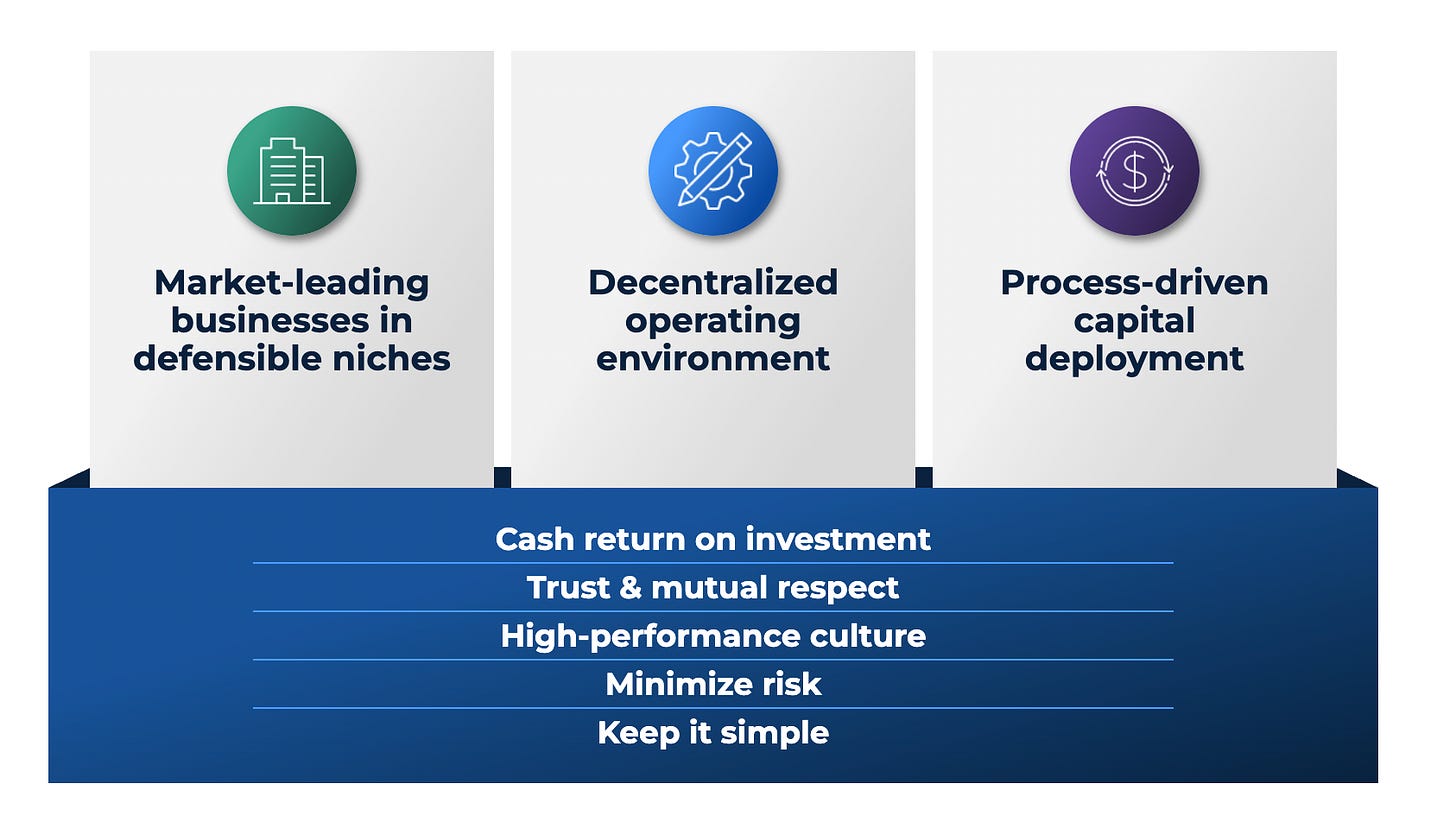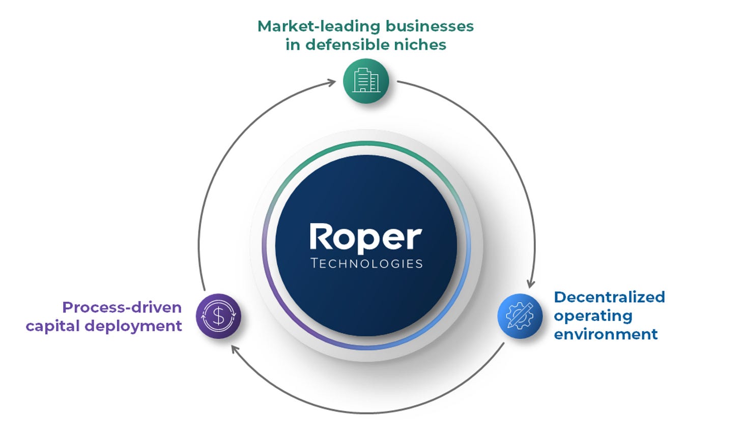 Capital deployment strategy: Roper follows a rigorous, analytical, and process-driven approach to redeploy excess capital into high-quality acquisitions with strong value-creation potential.