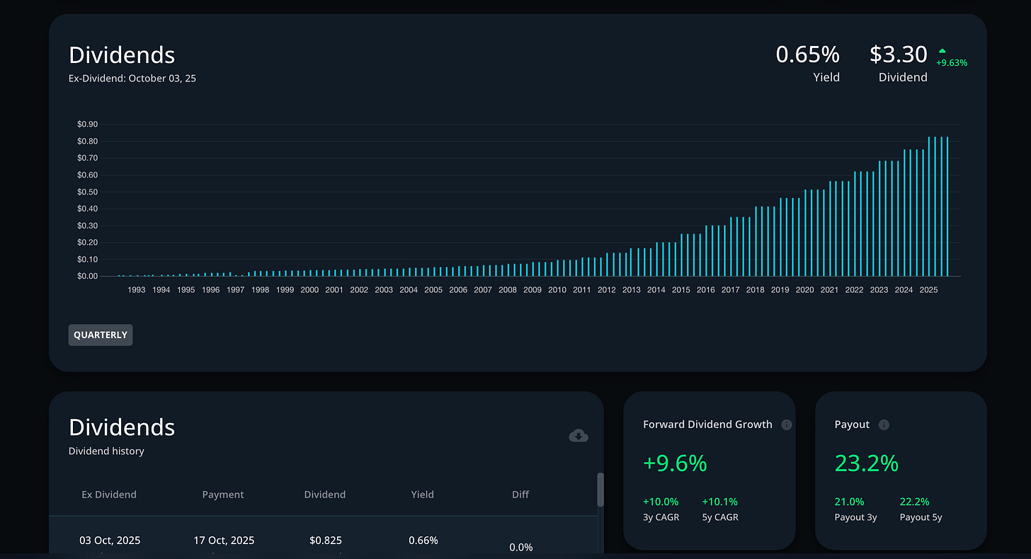 The dividend, growing over 10% per year, signals confidence and balance-sheet strength.