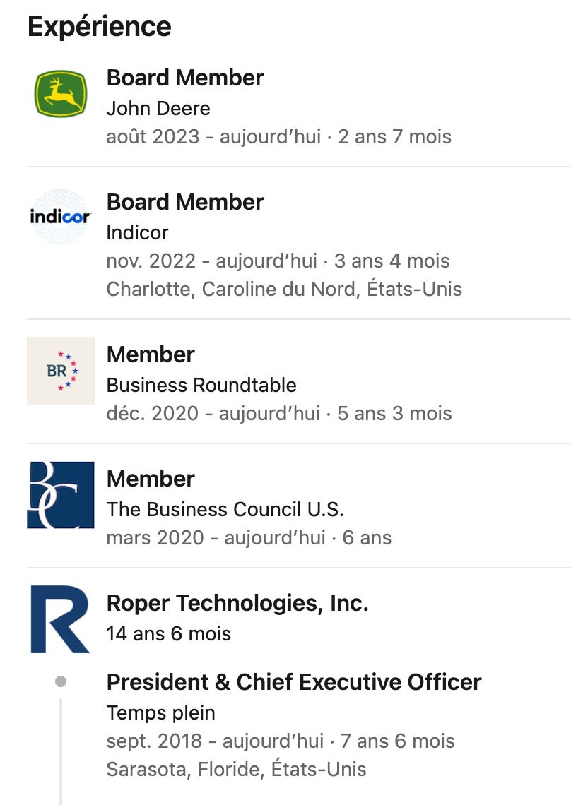 Depuis, Hunn a maintenu la stratégie tout en l’intensifiant. Il a finalisé la vente des actifs industriels, accéléré le rythme des acquisitions software, et lancé le premier programme de rachat d’actions de l’histoire de Roper (500 millions de dollars utilisés au Q4 2025).