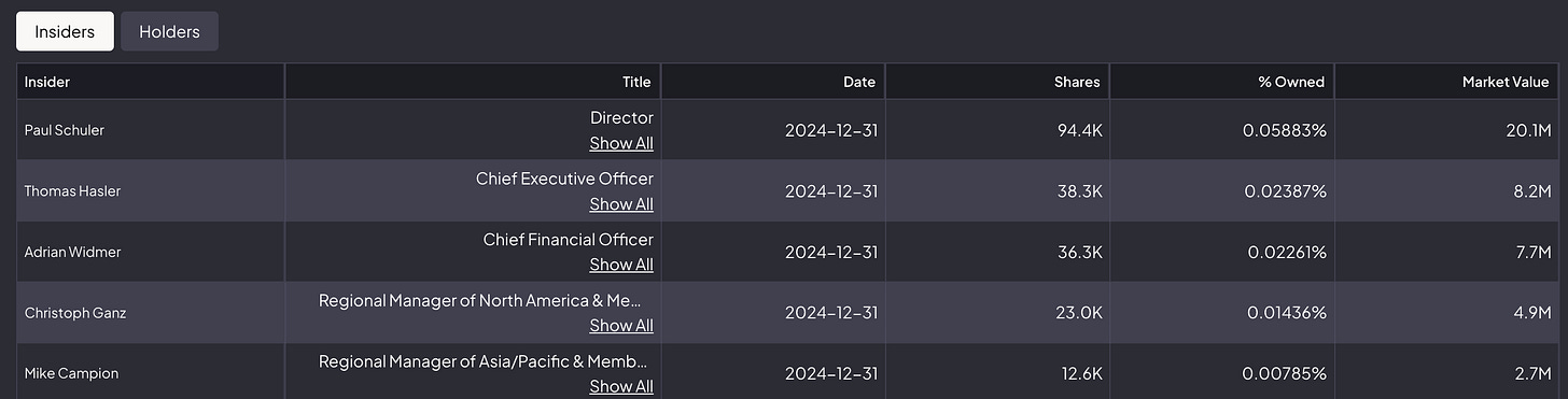 Le management détient une participation significative. La rémunération est indexée sur des critères de création de valeur (ROIC, croissance). Les achats/ventes d’insiders récents n’ont pas révélé de signaux d’alarme majeurs.