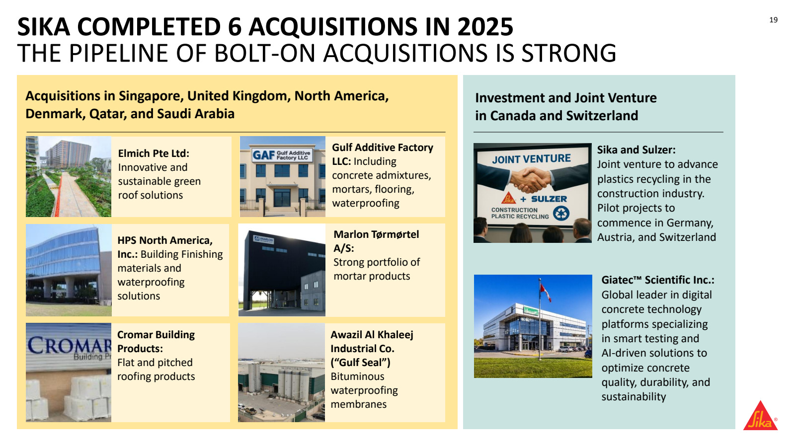 Lien des acquisitions https://www.sika.com/en/about-us/strategy/acquisitions.html