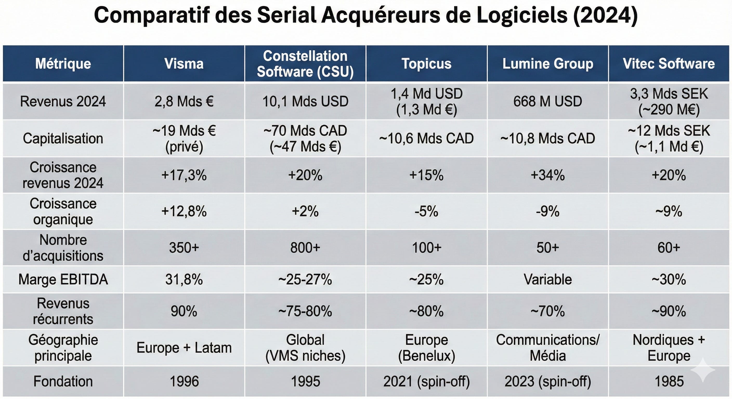 Le club des “Serial Acquirers” : Visma vs. Constellation Software vs. Topicus vs. Lumin