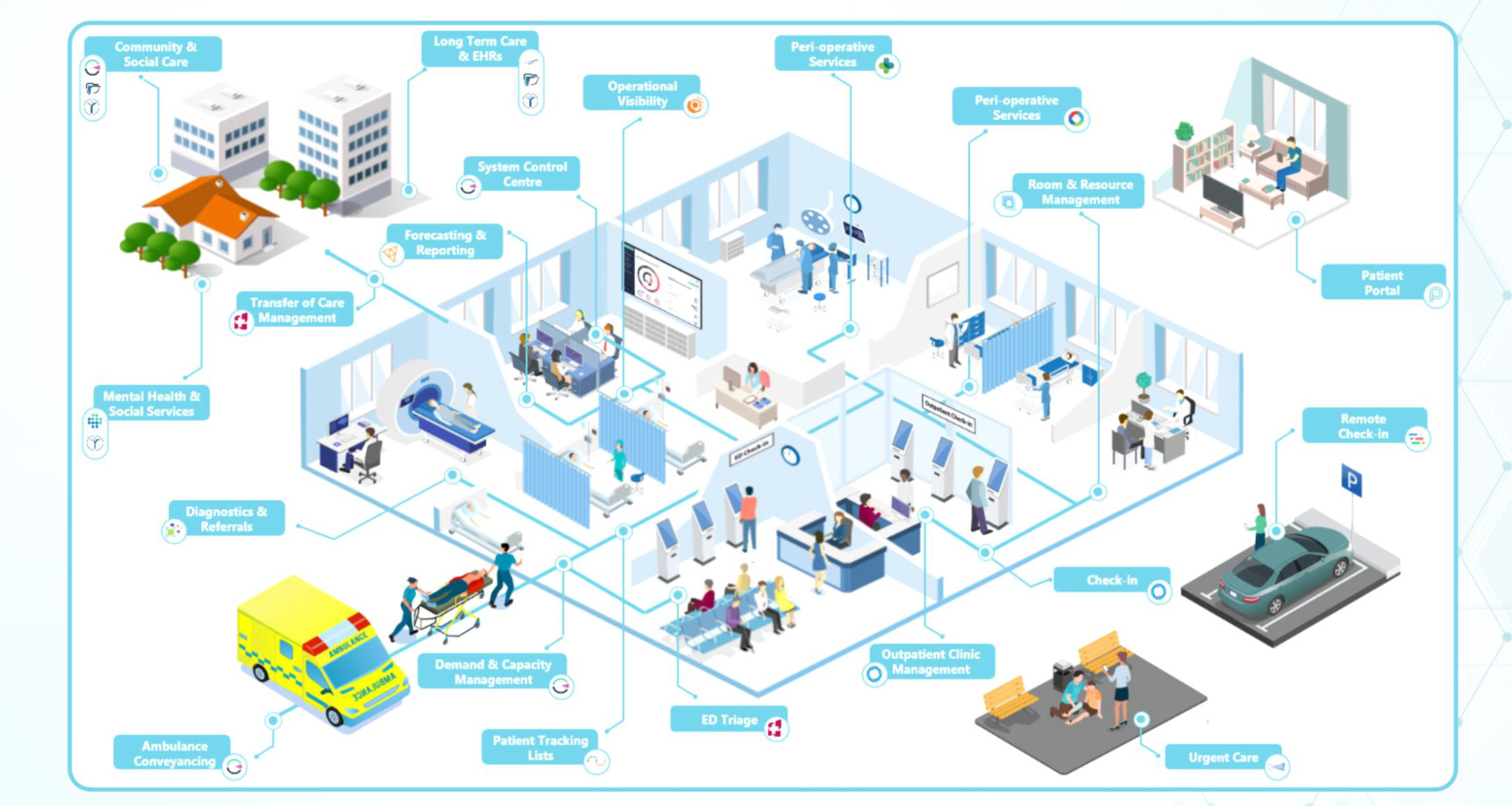 Le “Patient Flow & Operational Visibility” représente environ 65% du revenu et inclut des outils de gestion du parcours patient, de la prise de rendez-vous à la sortie de l’hôpital.