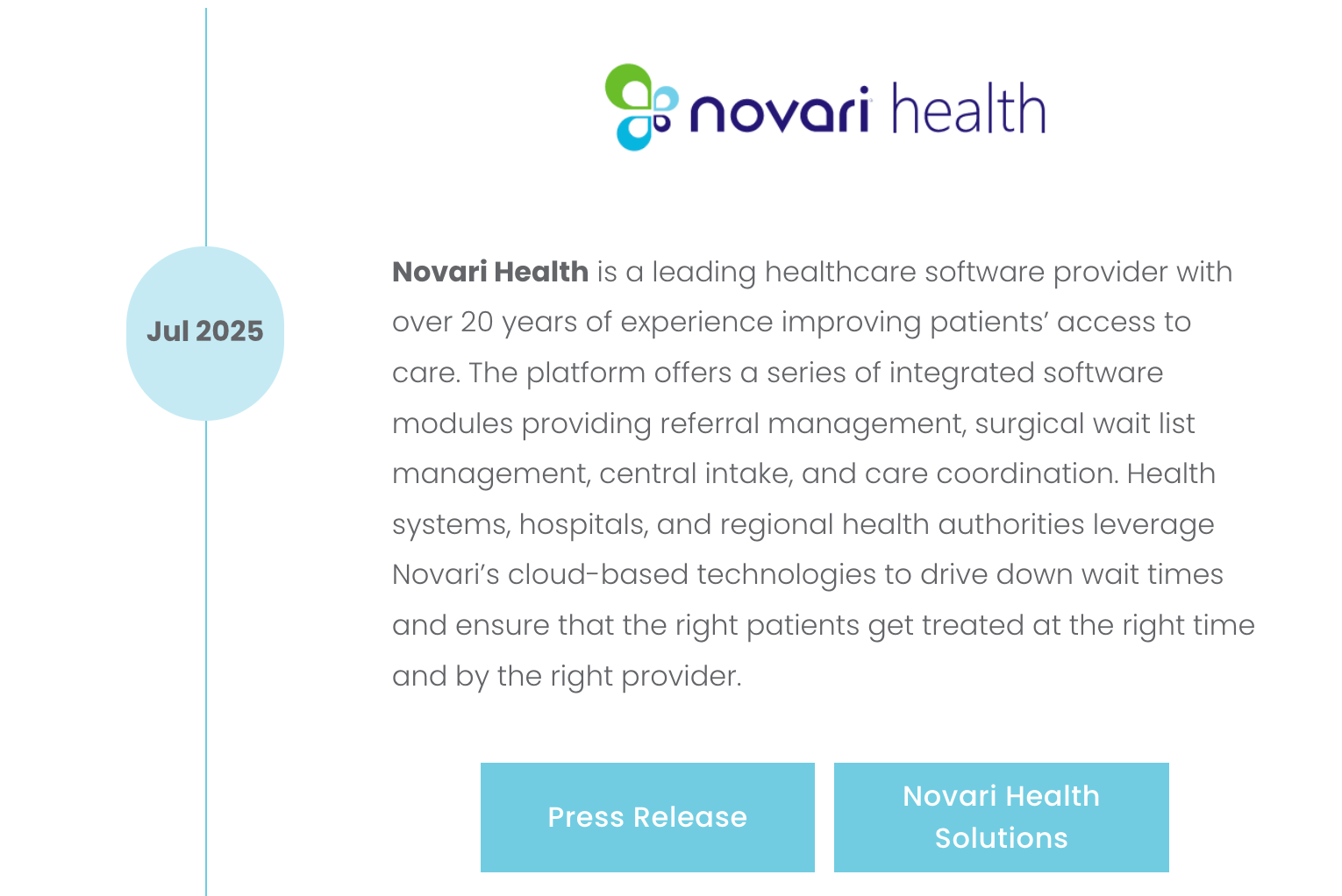 Novari Health (juillet 2025) : 43,6 millions CAD upfront + 5 millions d’earnout potentiel. Revenus estimés autour de 8-10 millions CAD (ARR de 8 millions ajouté). Multiple implicite de 4,5x à 5,5x le revenu. C’est au-dessus de la fourchette affichée de 1x-2,5x, mais dans une verticale stratégique (referral management) où la concurrence existe.